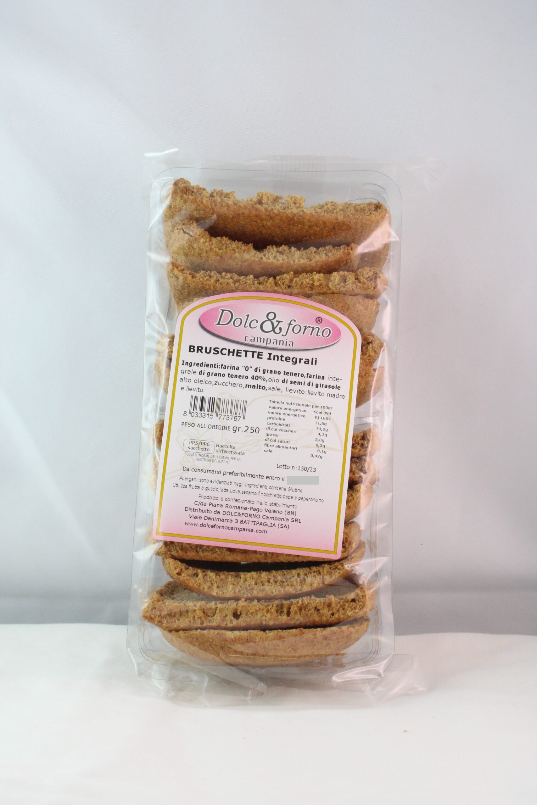 Ingredienti: Farina di Grano “0”; Farina integrale di grano tenero “0” 40% ; Farina di mais; olio di semi di girasole alto oleico; zucchero; Malto; sale; lievito; lievito madre.