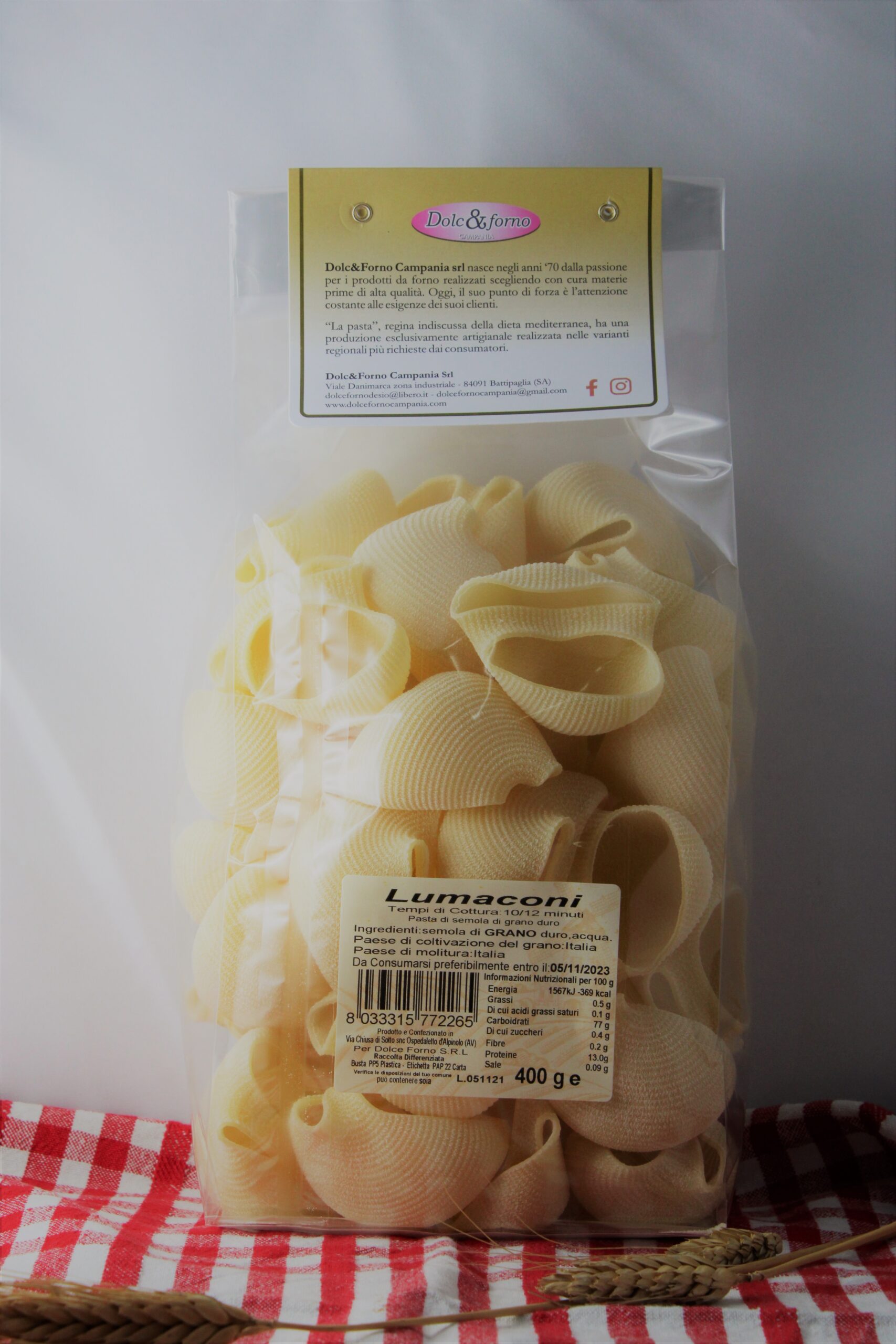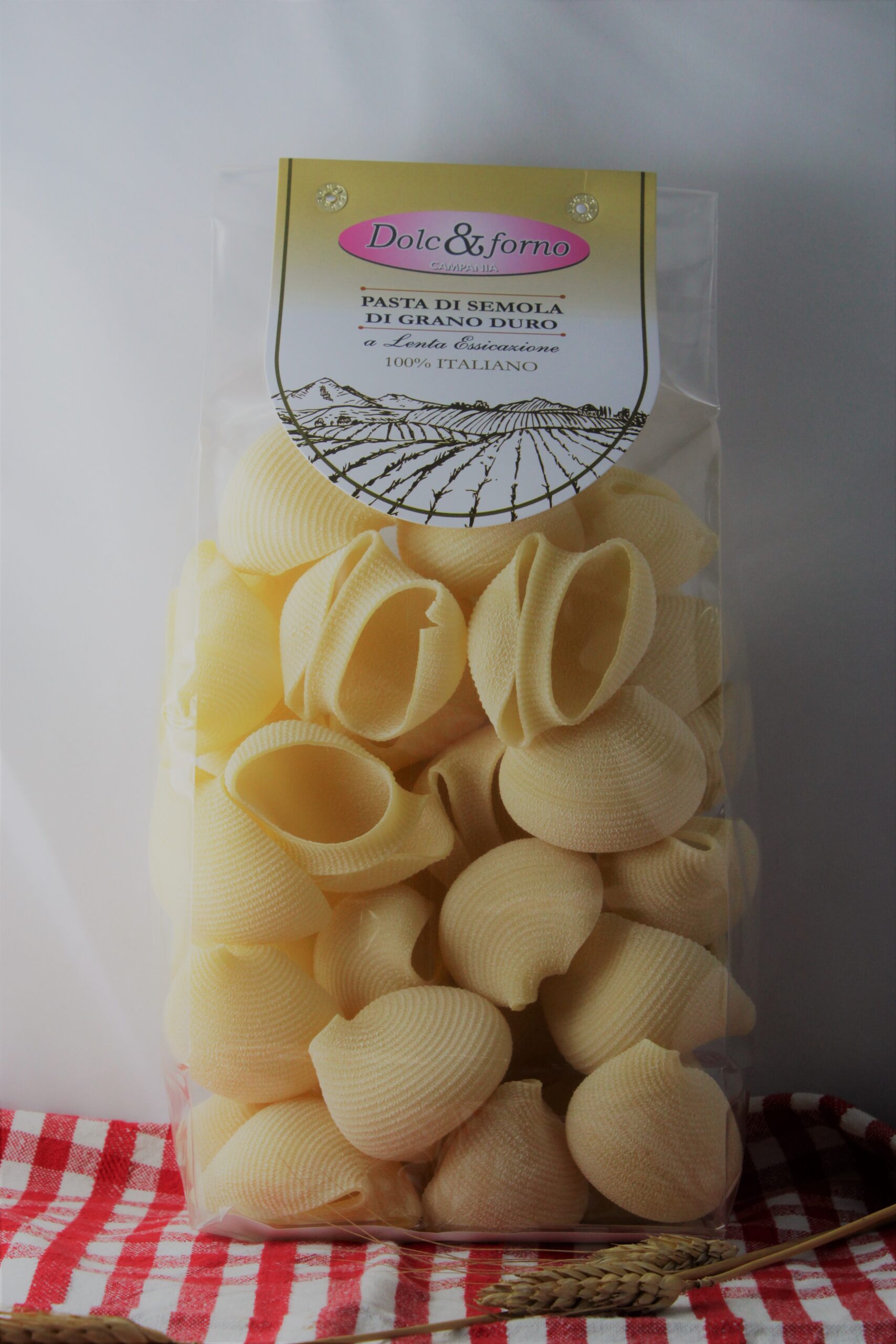Nella formazione dell’impasto vengono impiegate esclusivamente semole di grano duro e non vengono aggiunte sostanze coloranti né conservanti.