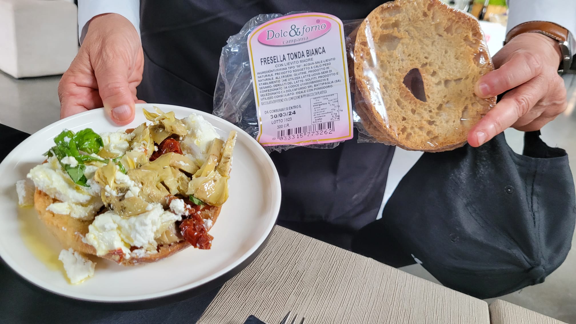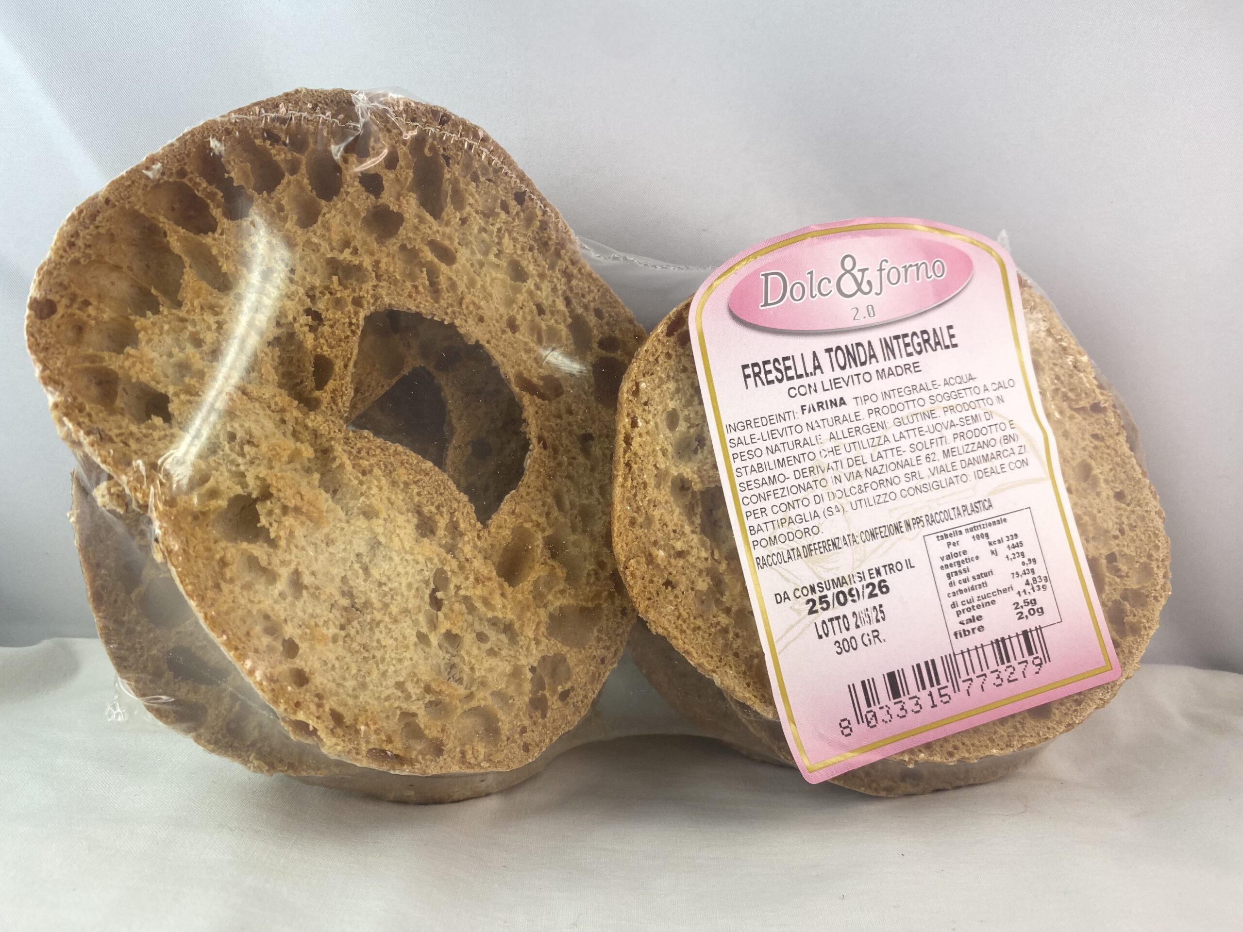 Ingredienti: Farina di grano tenero tipo “00” 64%; farina di grano integrale 27% acqua; Sale; lievito di birra.