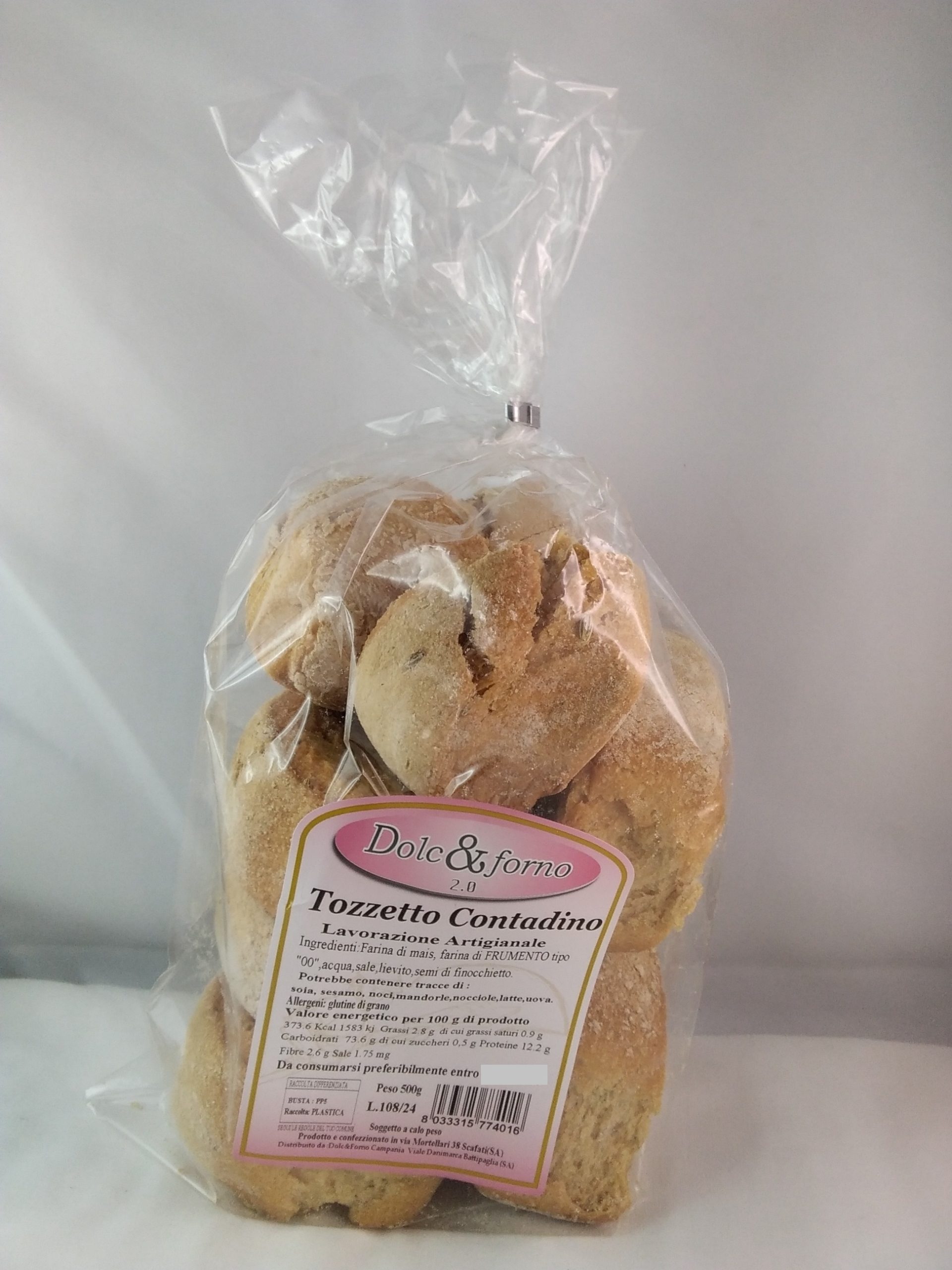 Ingredienti: Farina di mais; Farina di Frumento tipo 00; acqua; sale; lievito; semi di finocchietto.
